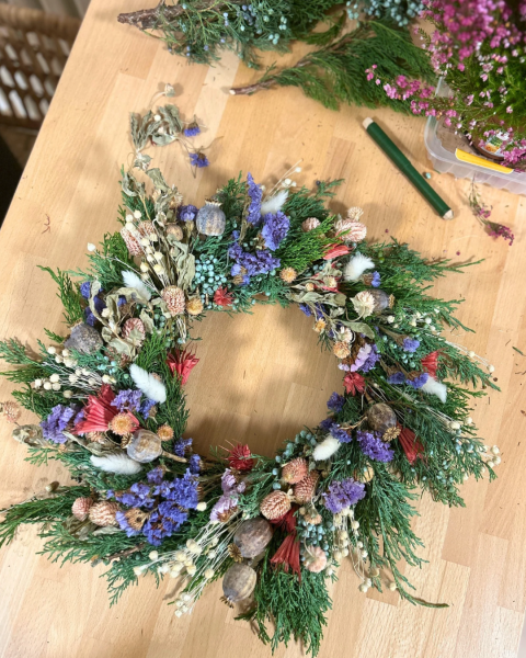 Tady najdete výběr ukázek z mojí tvorby – věnce pro všechna roční období, květinové dekorace i čelenky.